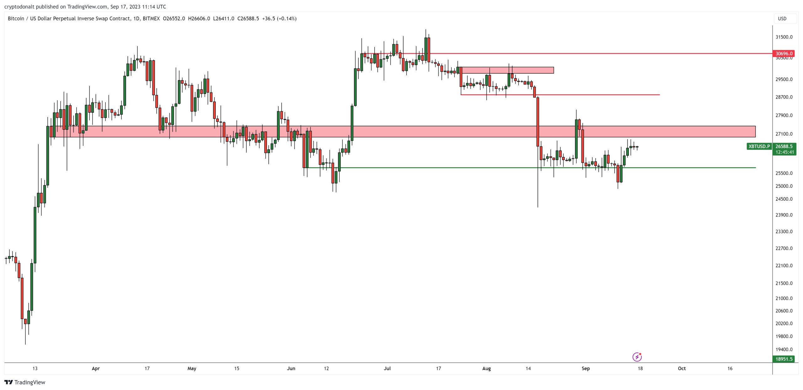 At time of writing, Bitcoin is buying and selling for $26,519.