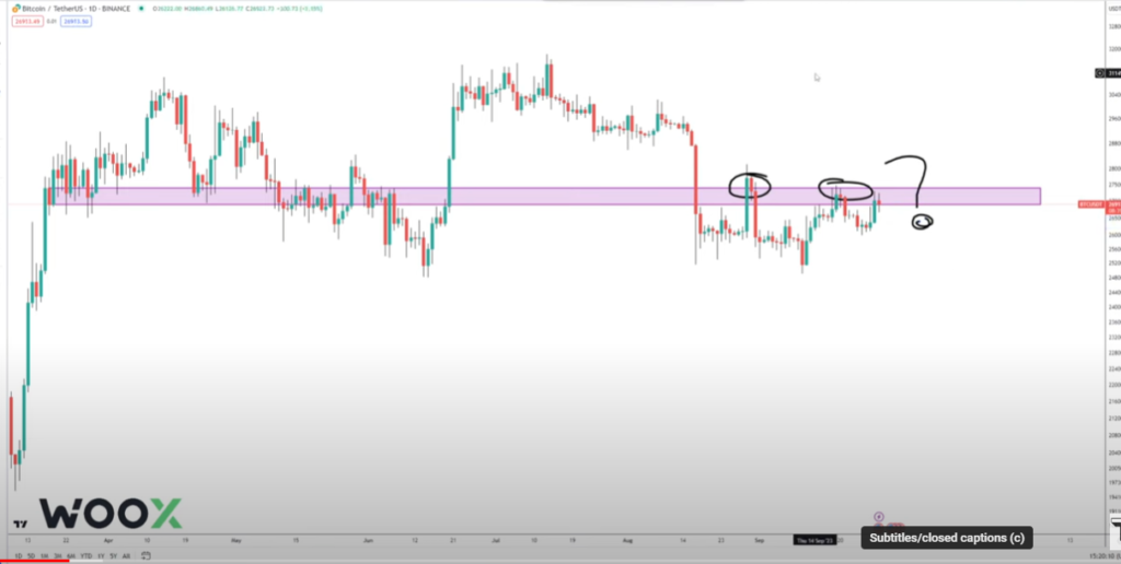 “If you happen to go on the Bitcoin each day chart, we’re proper again on the cluster of resistance. I actually often wouldn’t care about it an excessive amount of given we’ve examined it twice earlier than this third take a look at… However what I don’t like is that if the market pushes into resistance on mainly bull**it information in my eyes… as a result of bull**it narratives unwind actually quick…
