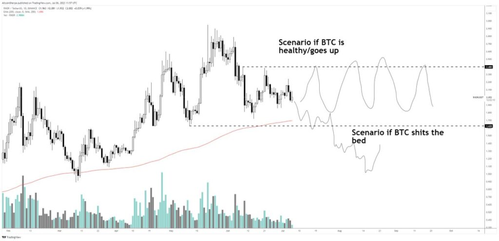 “RNDR: I believe this can be a good coin, however I believe that we see largely chop and that it underperforms BTC and ETH for the following bit. I believe that we see a powerful transfer down if BTC legs down (identical with each different alt).”