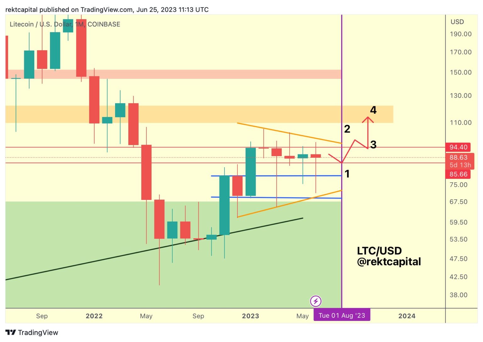 The pseudonymous analyst Rekt Capital tells his 347,200 Twitter followers that the peer-to-peer funds community Litecoin is setting itself up for a brand new value part.