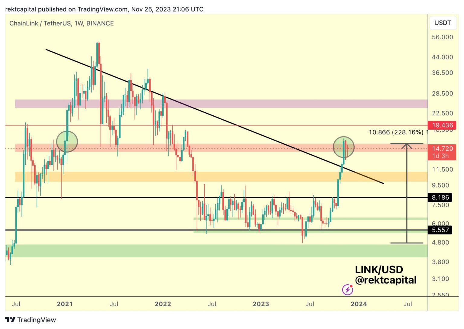 “Chainlink wants an analogous weekly shut like in early 2021 to rally larger.
