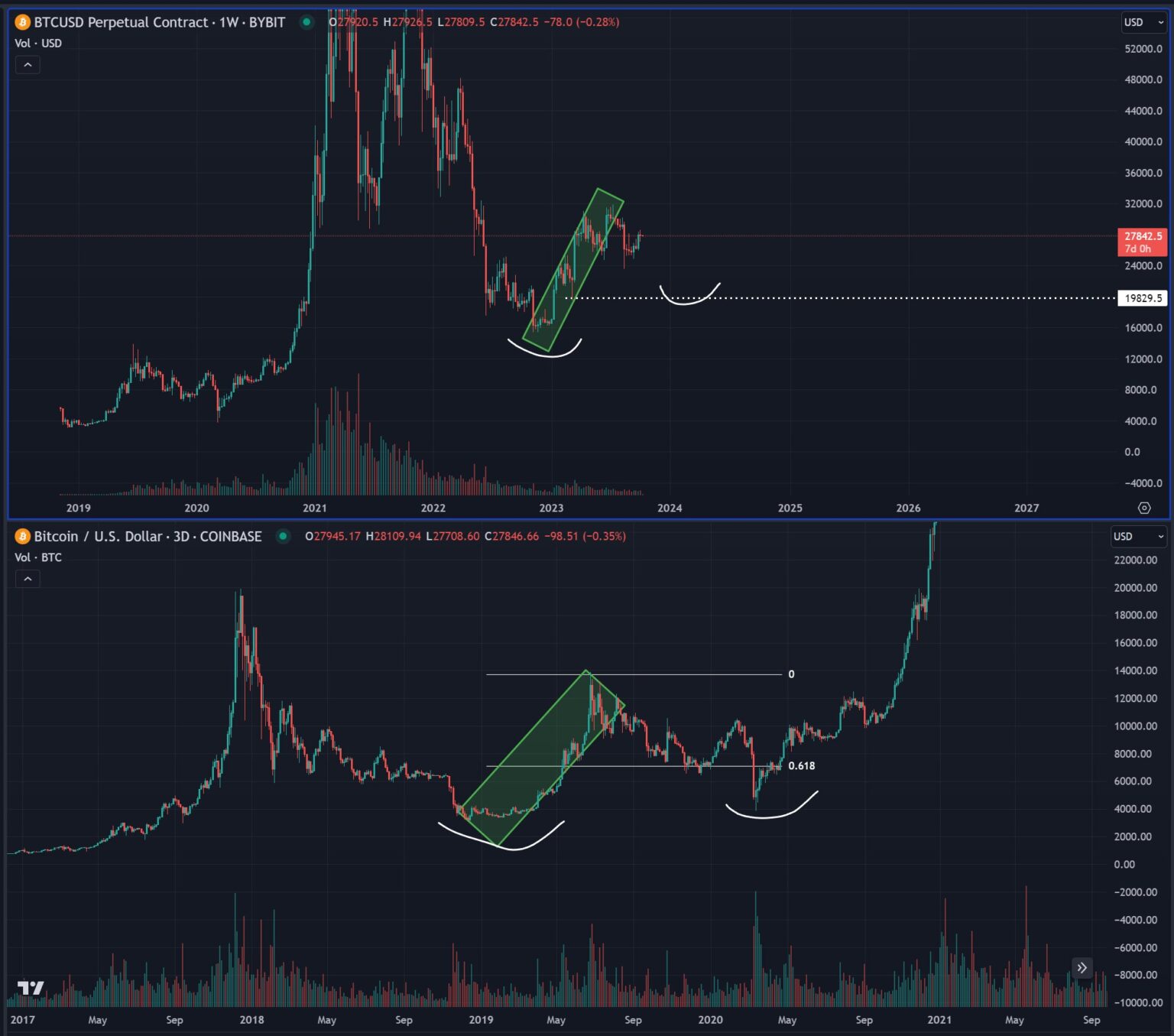 “Personally, I really feel that BTC has most likely bottomed at $15,000 but in addition that we’re within the 2019-2020 a part of the cycle the place we are able to nonetheless simply come right down to $19,000-$20,000 and put in a better low and proceed greater all through 2024.”
