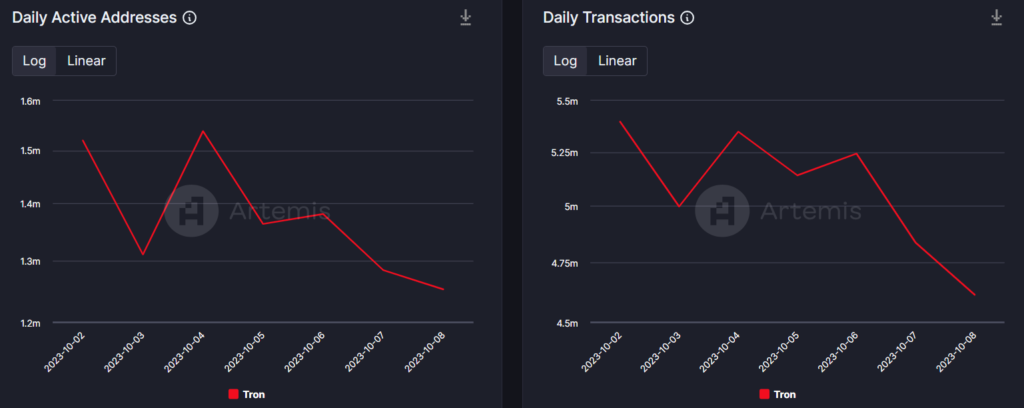 Aside from TVL, a take a look at Tron’s different metrics additionally identified that its community exercise dropped within the current previous.