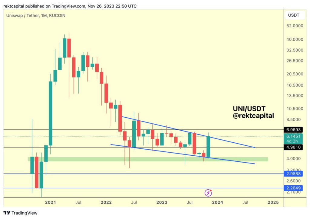 “Uniswap is on the cusp of a breakout from this macro market construction. Wants to interrupt the highest of this sample and reclaim it as help to enter a brand new macro uptrend.”
