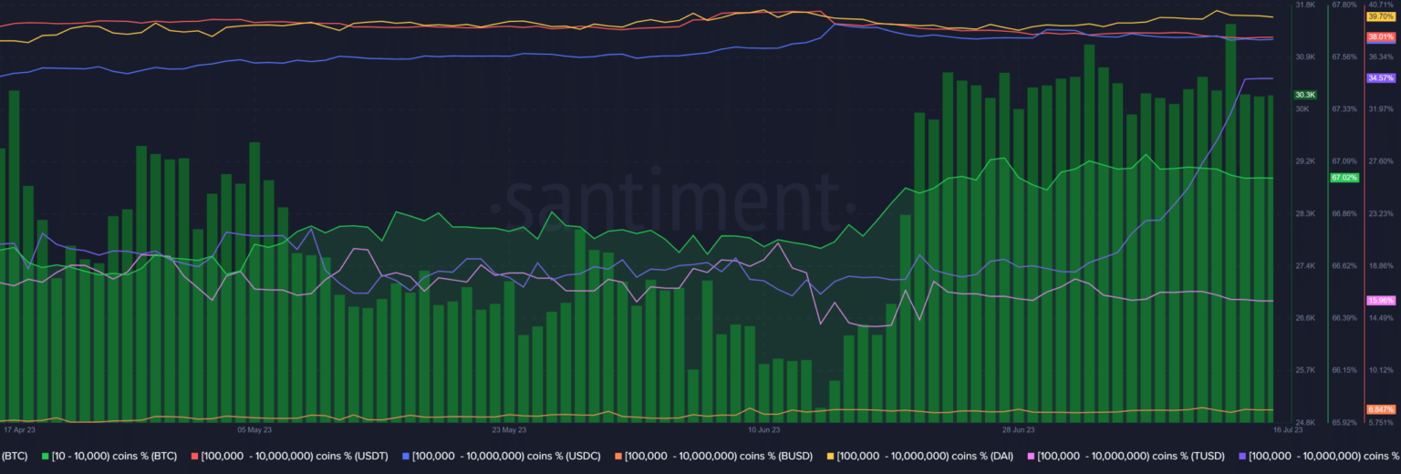 The chart revealed that addresses holding a considerable quantity of USDP, starting from 100,000 to 10 million items, accounted for 34.5% of the overall as of the time of writing. Notably noteworthy was that these whale addresses intensified their accumulation efforts in the beginning of July. Whereas different stablecoins boasted a bigger share of whale holdings, it demonstrated a better accumulation price than its counterparts.