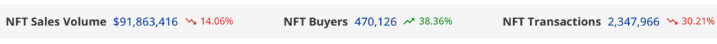 In line with the most recent statistics, gross sales of non-fungible tokens (NFTs) have taken a 14% dip in comparison with the previous week, tallying as much as $91.86 million previously seven days. Curiously, the rely of purchasers rose by 38%; nonetheless, NFT transactions witnessed a decline of over 30% throughout this week.