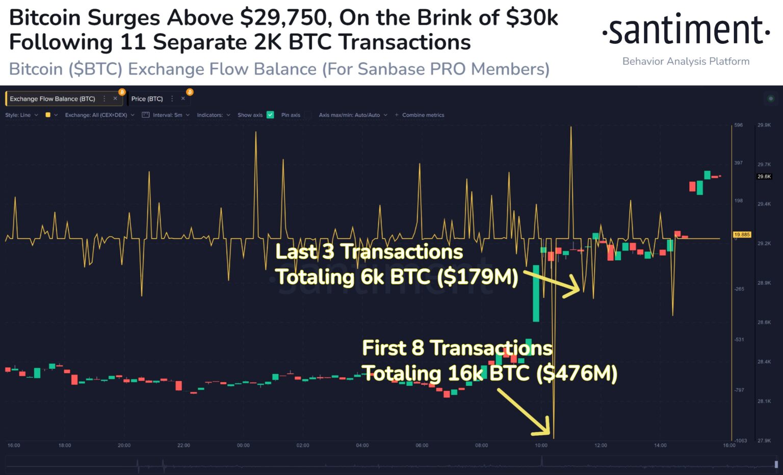Yesterday, Santiment noticed 11 totally different transfers of BTC totaling over $655 million in worth had taken place as Bitcoin approached $30,000.