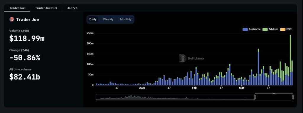 Dealer Joe was initially launched on the Avalanche [AVAX] community in 2021. Nonetheless, it expanded its companies to Arbitrum [ARB] in direction of the tip of 2022.