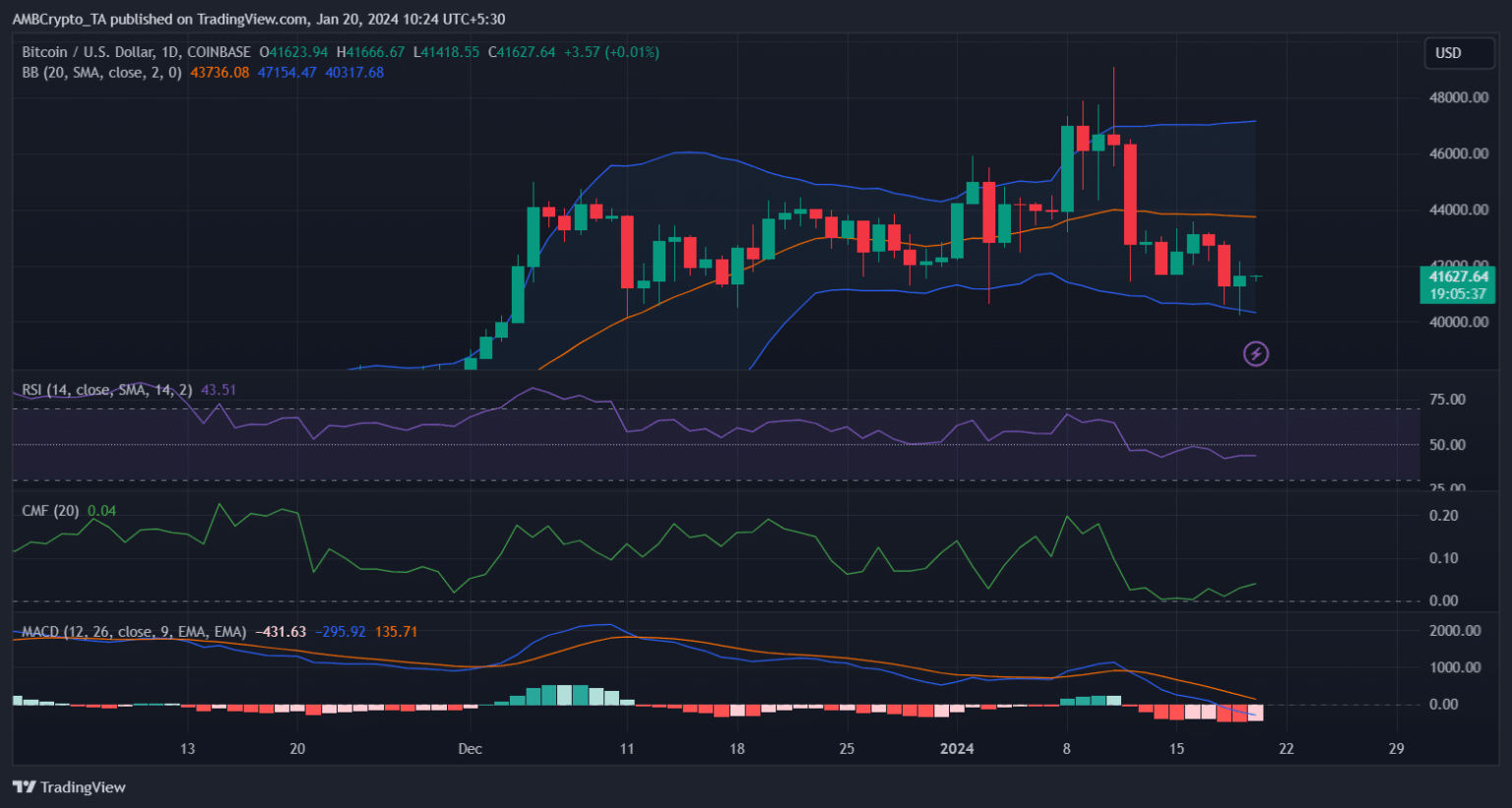 Bitcoin buyers bore losses final week because the king of cryptos value dropped by greater than 2% within the final seven days. In line with CoinMarketCap, on the time of writing, BTC was buying and selling at $41,592.53 with a market capitalization of over $815 billion.