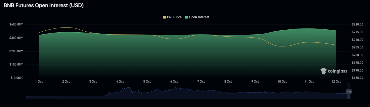 At $353.88 million at press time, BNB’s open curiosity has climbed by 11% since 1 October, information from Coinglass confirmed.