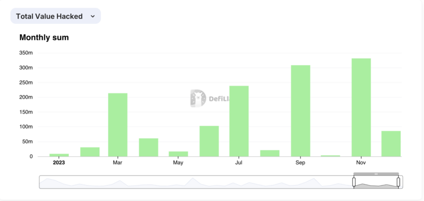 Quantity Misplaced to Safety Incidents in 2023. Supply: DefiLlama