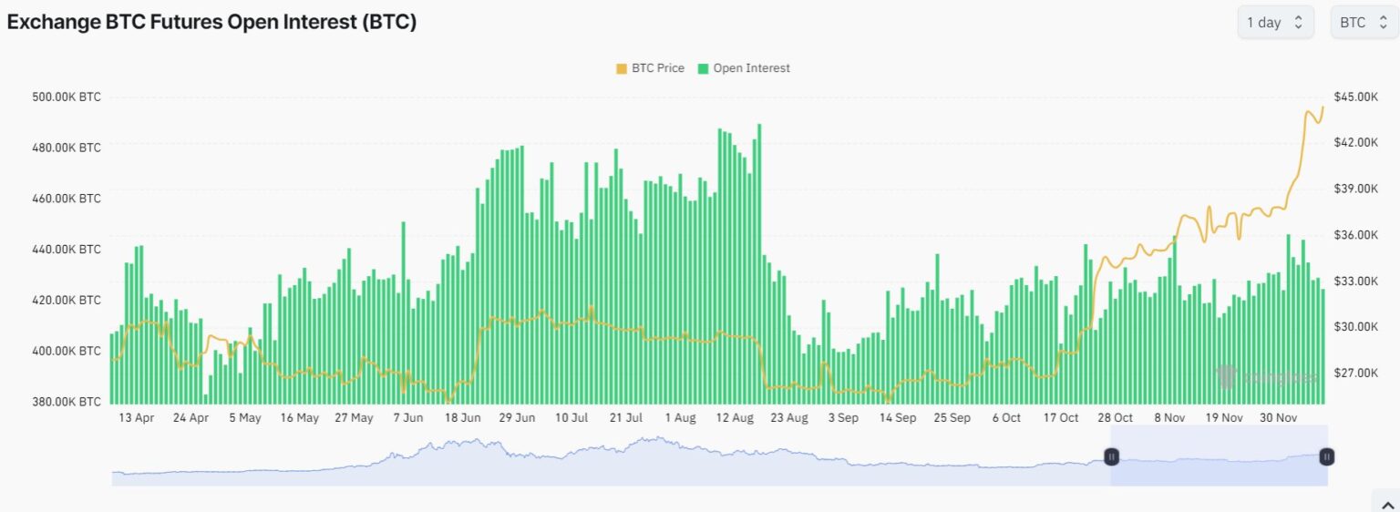 The continuing progress in open curiosity over the previous week is an element supporting the sustainability of this Bitcoin rally. It signifies spot accumulation, with open curiosity reaching ranges similar to these in October when the worth stood at $25,000.