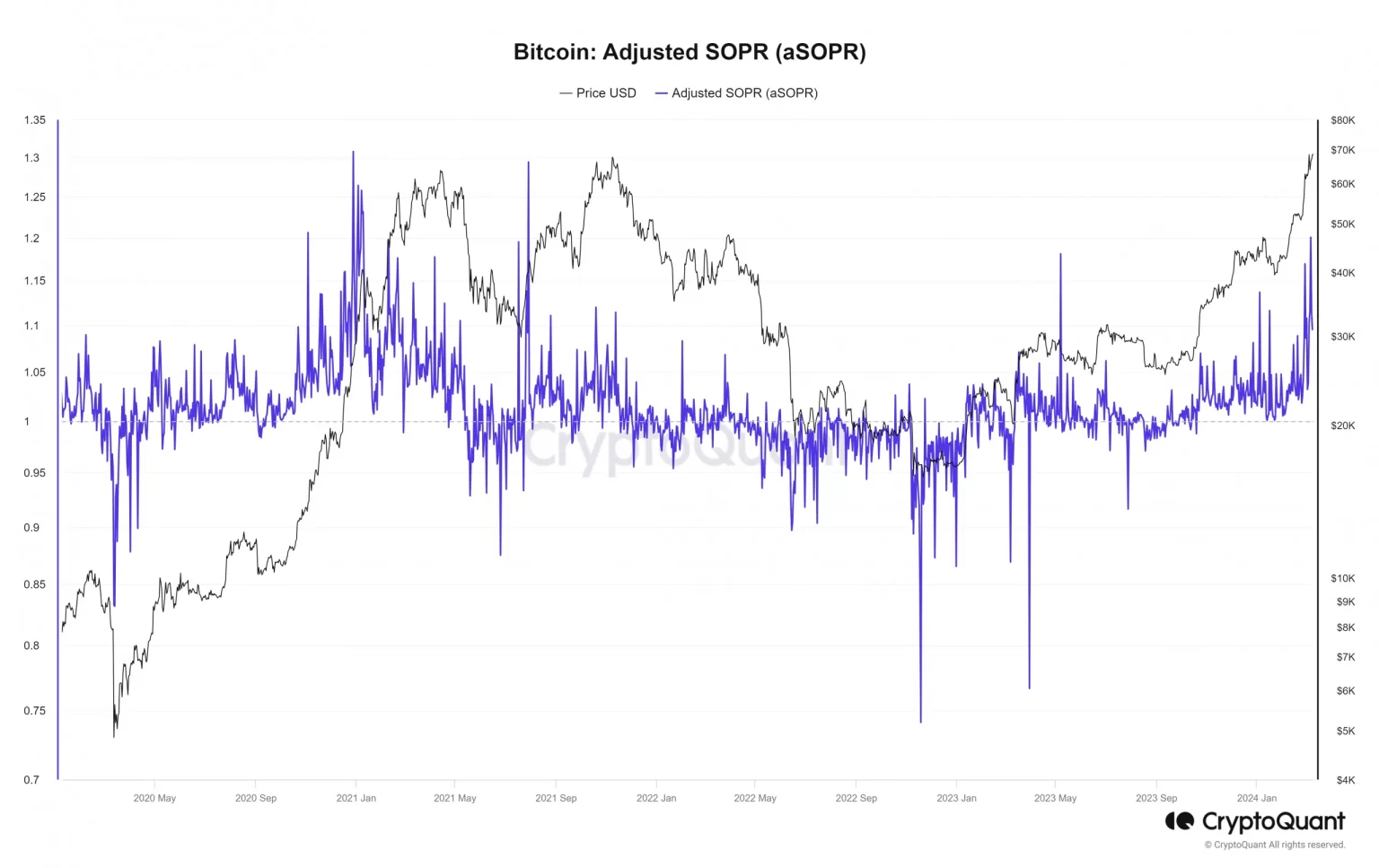 An analyst on CryptoQuant examined the Bitcoin bull and bear traits since January 2018 utilizing the adjusted Spent Output Revenue Ratio (aSOPR) metric. This metric is a variant of the spent output revenue ratio.
