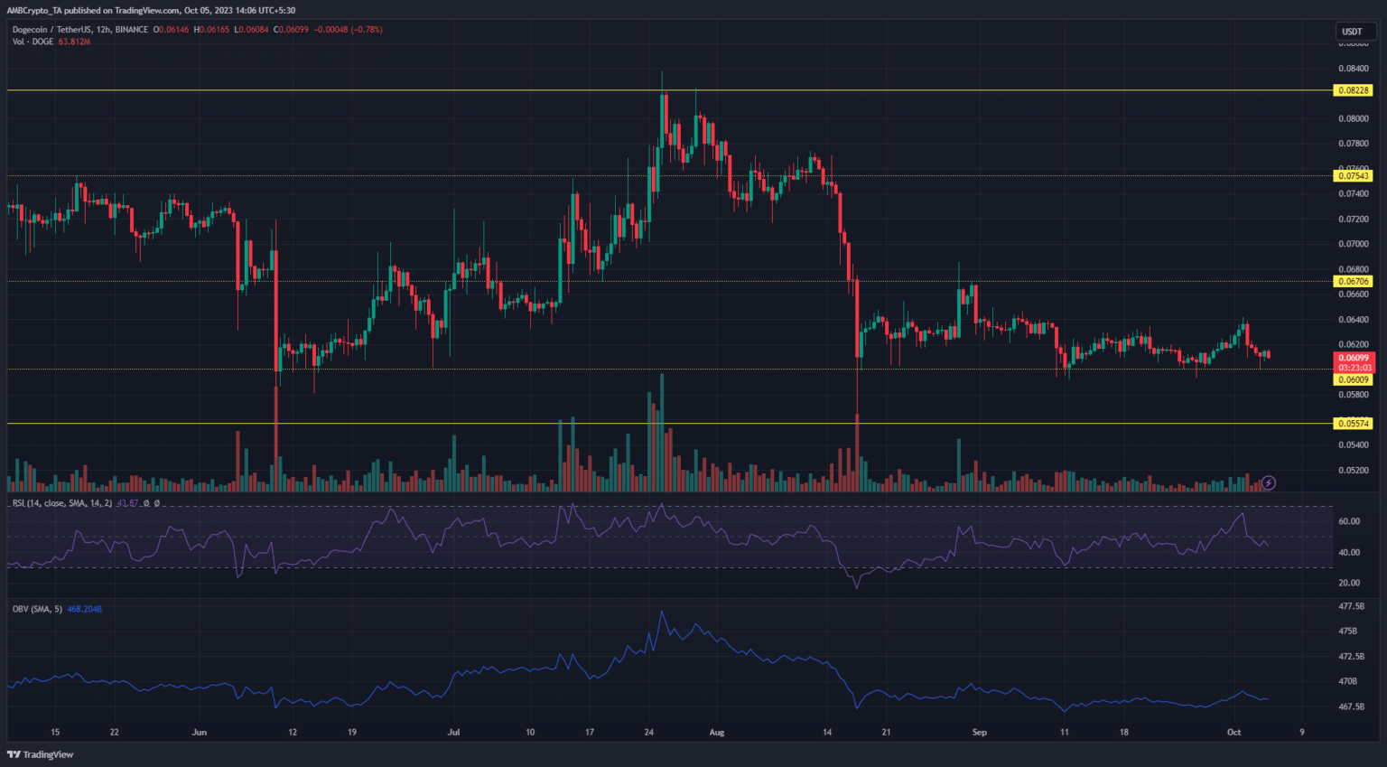 Though the broader crypto market was inexperienced with Bitcoin [BTC] buying and selling above $27.5k, DOGE bears may break the bullish resilience on the $0.06 assist within the quick time period.
