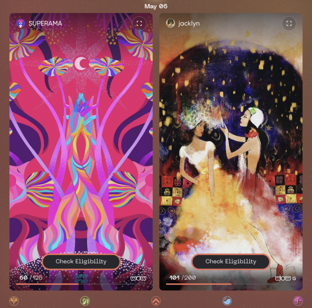 WoW’s Spring Artfest options editioned work from 16 artists within the house, hand-picked by Yam Karkai. WoW holders can test their eligibility (which is linked to the pores and skin tone trait of their WoW NFTs) to mint these items. They embody paintings from Sara Baumann, Alinadore, Orabel, Essa, Superama, Jacklyn, Varvara Alay, Kelly Hsiao, Rewind Collective, Sera Stargirl, Chris Alliel, Rhi Madeline, YuYu, Glam Beckett, Saeko Ehara, and Smeccea.