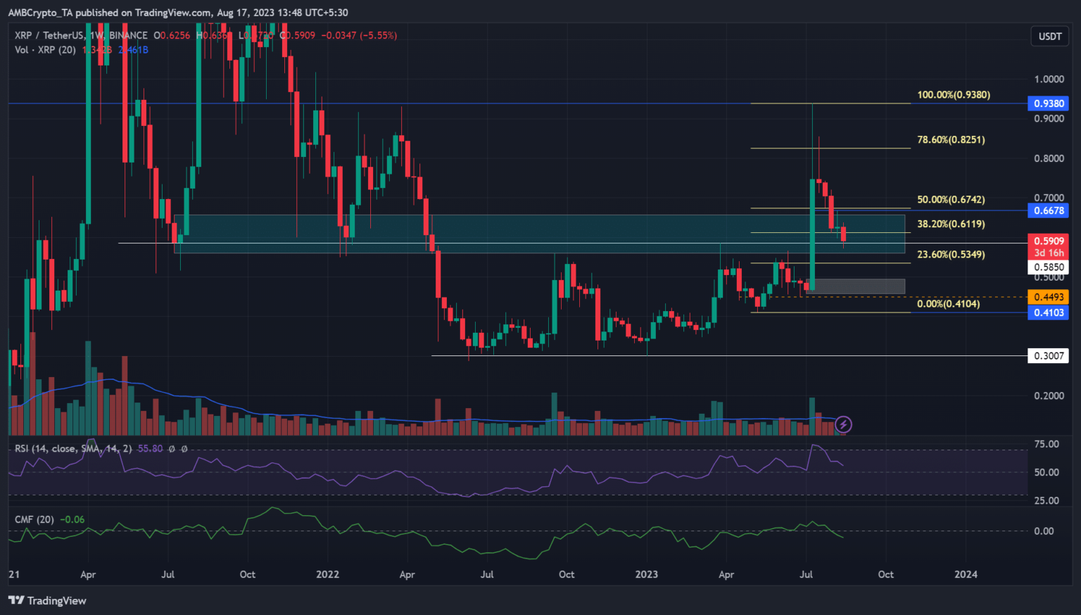 In July, the huge Ripple’s [XRP] pump, after the partial authorized win towards SEC, noticed it tuck +70% features after hitting a excessive of $0.94. Nevertheless, the bearish grip seen from mid-July is much from over and threatens to clear final month’s features.