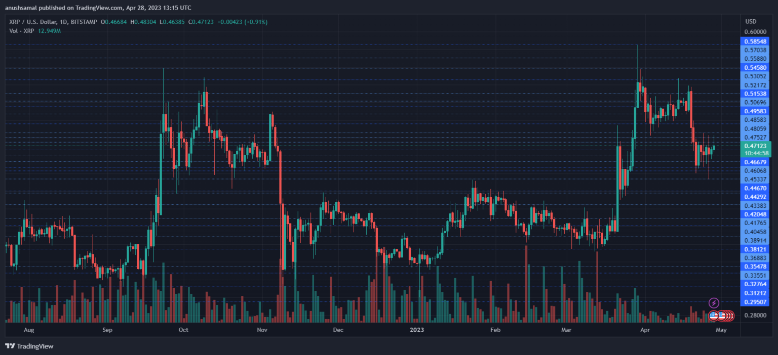 At the moment, the BTC worth is hovering beneath the $30,000 mark, and most altcoins have adopted the same development. If BTC breaks via the $30,000 mark, XRP may try to maneuver upwards.