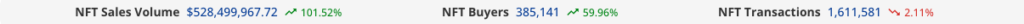 In response to information from NFT aggregator CryptoSlam, NFT gross sales quantity has elevated over 101% prior to now week in comparison with the week prior and has hit over $524 million transacted within the final seven days on the time of writing.